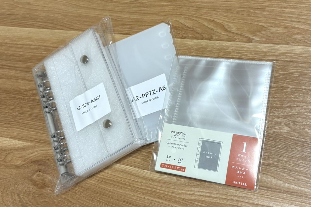 微妙にこのA6サイズのバインダーとポストカードのリフィルが合わず段差になっていますが、これ以上バインダーのサイズを上げると不格好になってしまうのでA6が最低ラインでした。